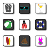 ikony wakacje, każda ikona kolor znajduje się na różne warstwy