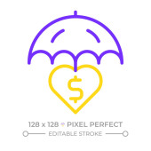Zdjęcie "Ubezpieczenie podatkowe dwie ikony linii kolorów. Ograniczanie ryzyka, ochrona inwestycji. Ubezpieczenie parasol dwukolorowy kontur symbol. Piktogram liniowy duotonu. Odizolowana ilustracja. Udar edytowalny" może być wykorzystywane do celów osobistych i komercyjnych zgodnie z warunkami zakupionej licencji Royalty-free. Obraz jest dostępny do pobrania w jakości wysokiej rozdzielczości do 5760x3840.
