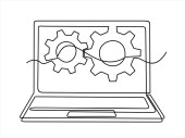 Ciągły rysunek jednej linii ikony czeku na ekranie laptopa. Jedna z ikon sieci - Wektor