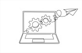 Zdjęcie "Ciągły rysunek jednej linii ikony czeku na ekranie laptopa. Jedna z ikon sieci - Wektor" może być wykorzystywane do celów osobistych i komercyjnych zgodnie z warunkami zakupionej licencji Royalty-free. Obraz jest dostępny do pobrania w jakości wysokiej rozdzielczości do 5760x3840.