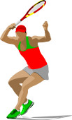 Zdjęcie "Tenisista. Kolorowy wektor ilustracji dla projektantów" może być wykorzystywane do celów osobistych i komercyjnych zgodnie z warunkami zakupionej licencji Royalty-free. Obraz jest dostępny do pobrania w jakości wysokiej rozdzielczości do 5760x3840.