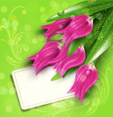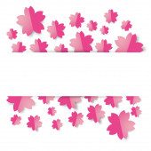 pasek papieru z różowy liści i krople rosy na biały backgro