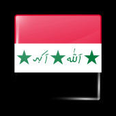 Stara wersja flagi z Iraku. Kształt prostokątny z zaokrąglonymi kukurydzy