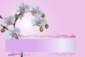 tło z egzotycznych kwiatów orchidei, ozdobione złotym waluta