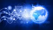 Najlepsza koncepcja internetowa globalnego biznesu. Globus, świecące linie na tle technologicznym. Elektronika, Wi-Fi, promienie, symbole Internet, telewizja, łączność komórkowa i satelitarna
