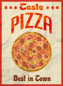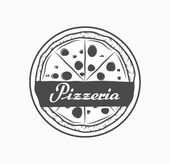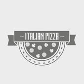 Wektor wzór logotypu lub plakat pojęcie pizzeria. Hipster włoskie jedzenie logo szablon.