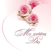 karty ślubu w formie serca z róży i różowa wstążka.