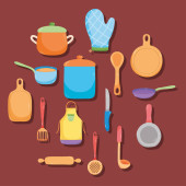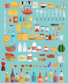 Set of Vector Icons and Illustrations in Flat Design Style. Kitchen Appliances and Food