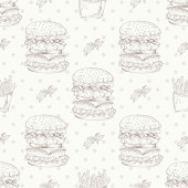 Fast foody wzór. Ilustracja retro rysować ręka. Sztuka projektowania.