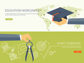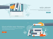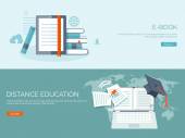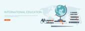 Vector illustration. University. Flat header. Education and learning. Online courses and web school. Knowledge and information. Study process. E-learning.