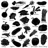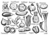 Bezbarwny, zestaw z warzywami, wektor kreskówka naklejki