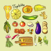 Zestaw kolorów z warzywami, naklejki wektorowe kreskówki
