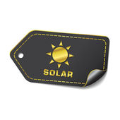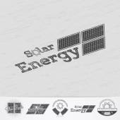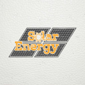 Solar panels for energy. Sustainable ecological solar energy generator powered by natural energy source. Old school of vintage label. Sheet of white paper. Monochrome typographic labels, stickers, log