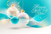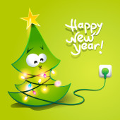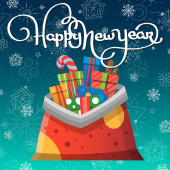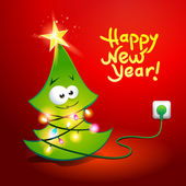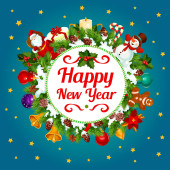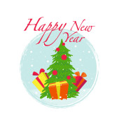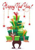 Choinka, mnóstwo prezentów na ciemnym niebieskim tle. VEC
