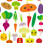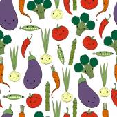Seamless pattern with vegetables. Cute background. Happy vegetab