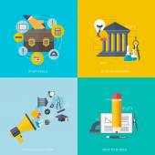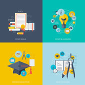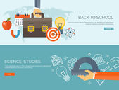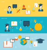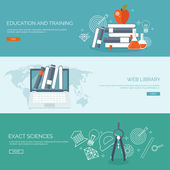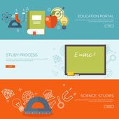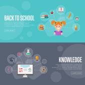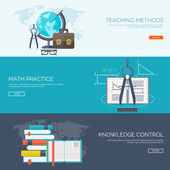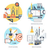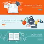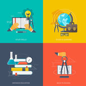 Ilustracja wektorowa. Zestaw płaskie tła. Kształcenie na odległość, uczenia się. Kursy online i www szkoły. Wiedzy, informacji. Badanie procesu. E-learning.