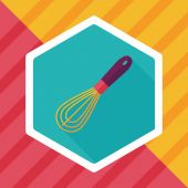 naczynia kuchenne trzepak płaski ikona z długim cieniem, eps10