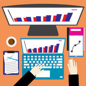 Zdjęcie "Widok z góry tabeli pracy przestrzeni biurowych. Pracy z komp" może być wykorzystywane do celów osobistych i komercyjnych zgodnie z warunkami zakupionej licencji Royalty-free. Obraz jest dostępny do pobrania w jakości wysokiej rozdzielczości do 5760x3840.
