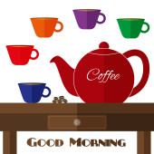 Pełni wektor ilustracja kofeina płaski z zestawem kubków w kolor brązowy