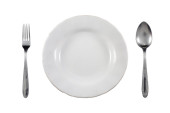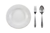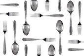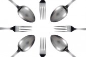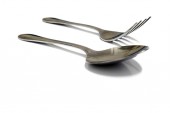 łyżka i widelec na białym tle