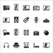 Czarny ikony komputerowe urządzenia peryferyjne i akcesoria