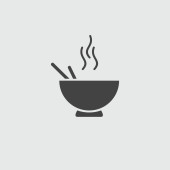 Miskę gorącej zupy z łyżką linia ikona.