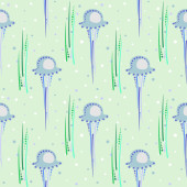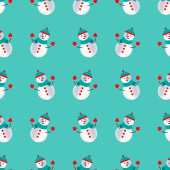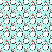 Seasonal winter light blue background with symmetrical white snowmen.