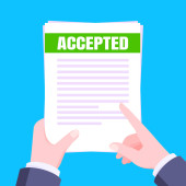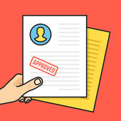 Zdjęcie "Job application approved. Hand holds job application with approval stamp on it. Flat vector illustration" może być wykorzystywane do celów osobistych i komercyjnych zgodnie z warunkami zakupionej licencji Royalty-free. Obraz jest dostępny do pobrania w jakości wysokiej rozdzielczości do 5760x3840.