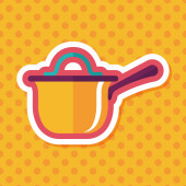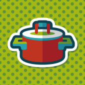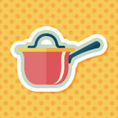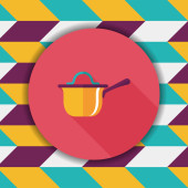 naczynia kuchenne garnek płaski ikona z długim cieniem, eps10