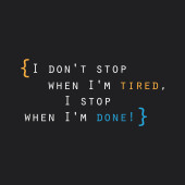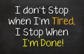 Nie przestawaj, kiedy jestem zmęczony, Stop, gdy jestem zrobić! -Inspirujący cytat, Slogan, mówiąc na czarnym tle