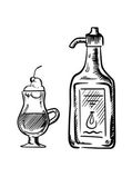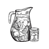 Strawberry and lemon juice with fresh fruits, sketch