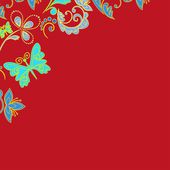 Amazing Christmas red curls and snowflakes pattern on yellow background