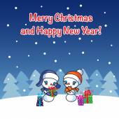 Dwa słodkie bałwanki i Boże Narodzenie drzewo kartkę z życzeniami