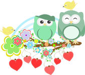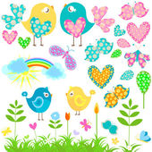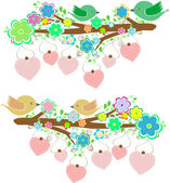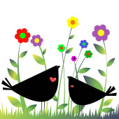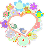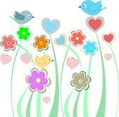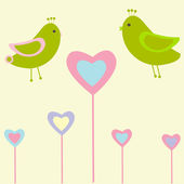 karta z ptaków na czerwone serca wśród kwiatów z miejscem dla tekstu
