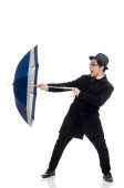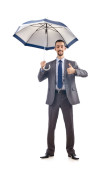biznesmen z parasolem na biały