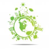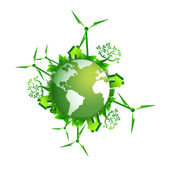 nowoczesne wiatraki na Zielona planeta projekt ilustracja na białym tle