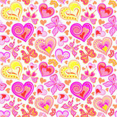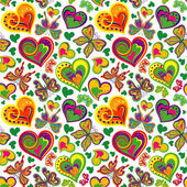 Bezszwowe valentine wzór z kolorowy wzór zielony i bordowy motyle, kwiaty serca na białym tle. Wektor