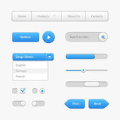 Blue Light User Interface Controls. Web Elements. Website, Software UI: Buttons, Switchers, Drop-down, Navigation Bar, Menu, Check Box, Radio, Scroller, Progress Bar, Volume, Tag, Player, Play