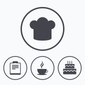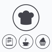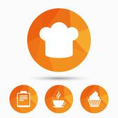 do kawy filiżanka ikona. szef kuchni kapelusz symbol. Muffin ciastko