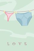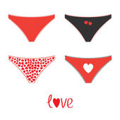 Bielizna majtki z serca i pocałunki miłość dzień valentine karty wektor