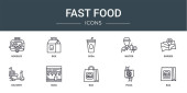 zbiór ikon w stylu płaski szary kolor na temat fast food