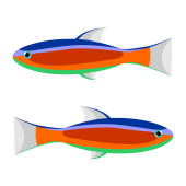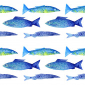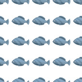 Seamless vector symmetrical pattern with colorful closeup fishes on the light background