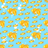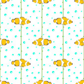 Bezszwowe wektor wzór żółty ryby i pęcherzyki na zielonym tle