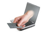 kartą z chipem w ręku od monitora ilustracji wektorowych