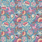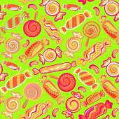 Seamless background with various candies. Vector illustration. Bright background with candies.