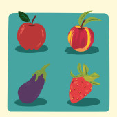 Wektor owoce ikona. Zestaw kolorowych ikon truskawek, na białym tle na białym tle