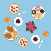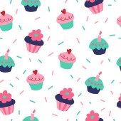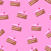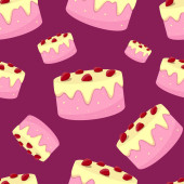 Vector seamless cake and strawberry pattern. Design for cards, menu, textile, fabric. Sweets with vanilla, strawberry and cream