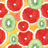 Akwarela zestaw świeżych pomarańczy, kiwi i grejpfruta