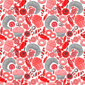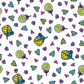Vector seamless hand draw background on a white. Bright backdrop with candies