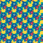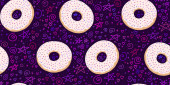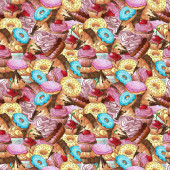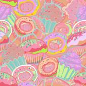 Pastry hand drawn seamless pattern. Doodle collection confections. Blue background